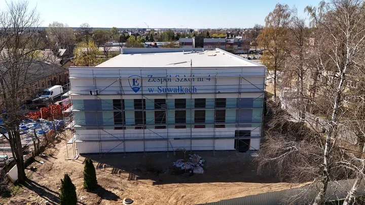 Przy Zespole Szkół nr 4 w Suwałkach widać już ostatnią prostą. W nowej hali sportowej domykane są prace wykończeniowe, a obiekt zaczyna nabierać kształtu, który wyraźnie wykracza poza szkolną salę do gier. To inwestycja, która ma połączyć codzienne lekcje wychowania fizycznego z jubileuszem 120-lecia szkoły. W tle jest też konkret – blisko 6,8 mln zł i wsparcie z programu Olimpia.
