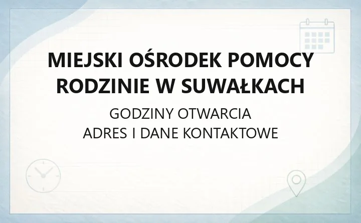 Miejski Ośrodek Pomocy Rodzinie w Suwałkach pomaga mieszkańcom w sprawach świadczeń rodzinnych, funduszu alimentacyjnego, orzecznictwa o niepełnosprawności, rehabilitacji społecznej i zawodowej oraz pieczy zastępczej. W mieście działają też punkty wsparcia instytucjonalnego, w tym ogrzewalnia dla osób bezdomnych i nietrzeźwych oraz Klub Senior+. Poniżej znajdziesz najważniejsze adresy, godziny i dokumenty, które najczęściej są potrzebne do złożenia wniosku.