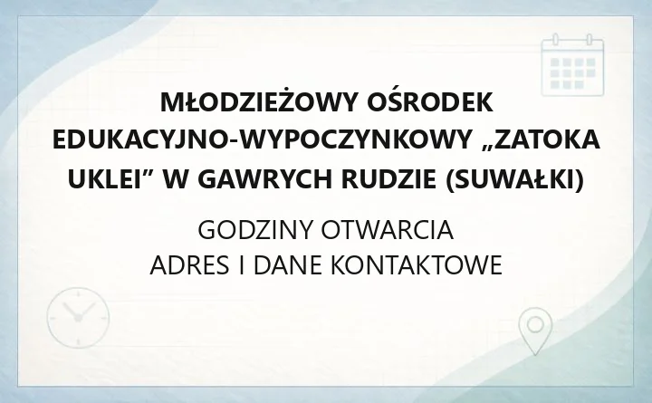 Młodzieżowy Ośrodek Edukacyjno‑Wypoczynkowy „Zatoka Uklei” w Gawrych Rudzie (Suwałki) - kontakt, godziny, informacje