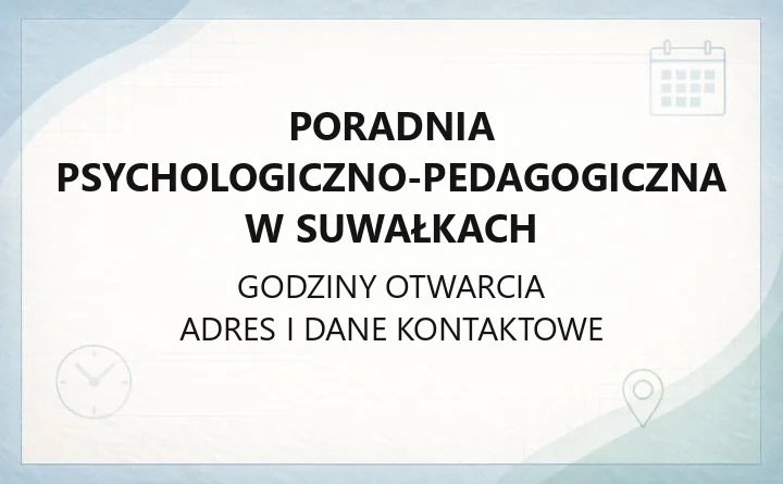 Poradnia Psychologiczno-Pedagogiczna w Suwałkach działa przy ul. Nowomiejskiej 10. To miejsce, w którym dzieci i młodzież mogą skorzystać z pomocy psychologiczno-pedagogicznej oraz konsultacji logopedycznych. Poniżej znajdziesz adres, telefony, godziny pracy oraz zasady zapisów na wizytę.