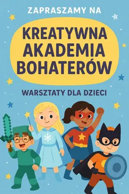 - Kreatywna Akademia Bohaterów – tworzenie rekwizytów (maski, miecz, różdżka, korona itp.), budowanie własnego świata wyobraźni oraz wykonywanie zadań i misji związanych z rolą bohatera.