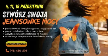 Trzydniowy warsztat skierowany do kobiet, które szukają impulsu do zmiany i chcą połączyć rozwój osobisty z działaniem twórczym. Uczestniczki pracują praktycznie — m.in. przy projektowaniu i zdobieniu kurtki jeansowej oraz tworzeniu osobistego totemu — oraz korzystają z narzędzi pracy z emocjami, podświadomością i kobiecą energią. Organizator podkreśla kameralny charakter zajęć i ograniczoną liczbę miejsc.