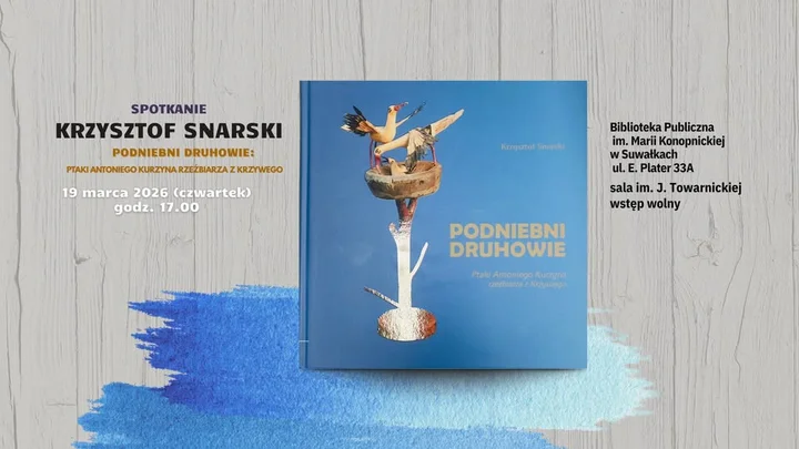 Podczas spotkania zaprezentowany zostanie album fotograficzny „Podniebni Druhowie – ptaki Antoniego Kurzyna rzeźbiarza z Krzywego” autorstwa dr. Krzysztofa Snarskiego. Publikacja powstała z inicjatywy Gminy Suwałki, przy współpracy z rodziną artysty, Muzeum Okręgowym w Suwałkach oraz osobami i instytucjami, które udostępniły prace do opracowania. Album ukazał się w nakładzie 1000 egzemplarzy dzięki wsparciu Ośrodka Czytelnictwa i Kultury Gminy Suwałki; zawiera fotografie ze zbiorów prywatnych i instytucjonalnych .