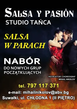 Rozpoczyna się rekrutacja do nowej grupy osób początkujących, które chcą nauczyć się salsy. Zajęcia poprowadzi instruktor i choreograf Mihail Nikolov. Organizatorzy zapraszają wszystkich chętnych — także osoby bez partnera, dla których postaramy się znaleźć parę. Spotkanie organizacyjne odbędzie się we wskazanym terminie i miejscu.