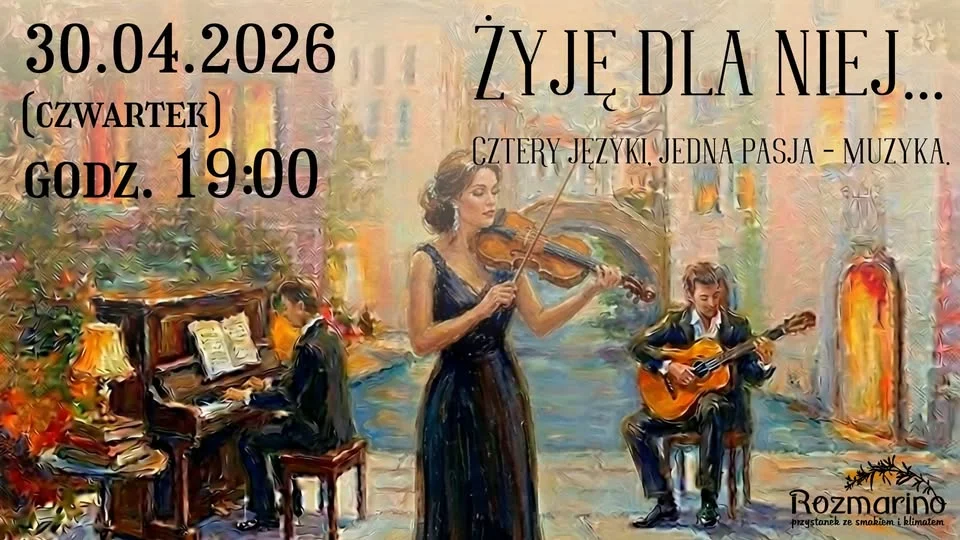 „Żyję dla niej…” zapowiada się jak wieczór, który po prostu chce się przeżyć na spokojnie, z muzyką, emocjami i odrobiną podróży po różnych zakątkach Europy W jednym koncercie pojawią się utwory w czterech językach, więc będzie różnorodnie, melodyjnie i bardzo klimatycznie. Warto zarezerwować sobie ten termin, jeśli masz ochotę na coś naprawdę wyjątkowego.